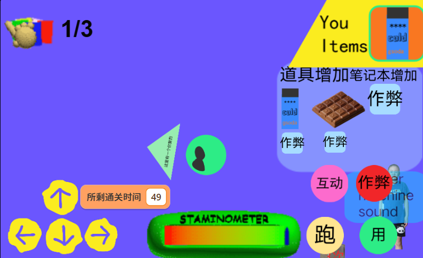 Story: Oh no, your friend has lost 15 notebooks at Chen Yukai's school! You need to retrieve them, but the school is fraught with peril... Can you get them now? Hint: This is not a test. Instructions: WASD to move up and down; Q to interact (with the water dispenser); E to use the items at hand; R to toggle running; F to activate cheats; click to calibrate Gsoda.